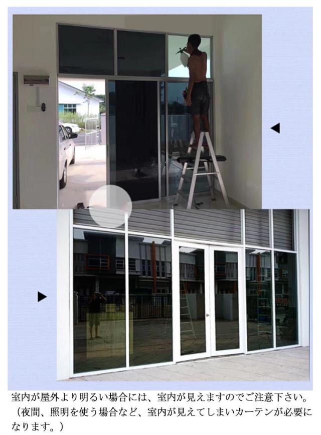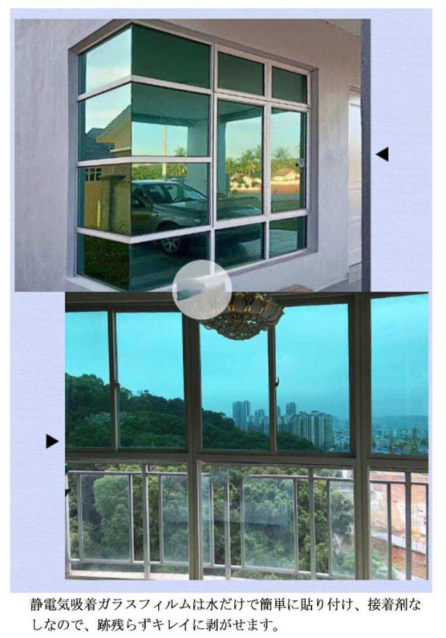 | 家庭用にもオフィス用にも適用の窓用フィルムです。 充分な天然の日光を室内に取り込めて明るさを維持しながら、外からの視線を遮ります。 ガラスを通して室内に入る大量の有害な紫外線を大幅カットできます。 フィルムが太陽の光を反射吸収するので、室内に入る熱を抑え、冷房で涼しくなった室温を保つ事ができます。 オフィス、会議室、浴室など目隠し効果が大事なところにおすすめします。 静電気吸着効果が粘着力を引き出し、台風や地震時にガラスが割れても破片は飛び散りません 静電気吸着ガラスフィルムは水だけで簡単に貼り付け、接着剤なしなので、跡残らずキレイに剥がせます。 | |