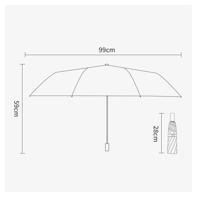 | サイズについての説明 | 三つ折り(自動開閉):全長約29cm/直径約95cm/重さ344/中骨8本 三つ折り(手動開閉):全長約28cm/直径約99cm/重さ347/中骨8本 五つ折り(手動開閉):全長約19cm/直径約96cm/重さ280/中骨8本 |