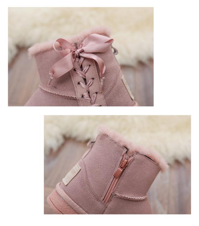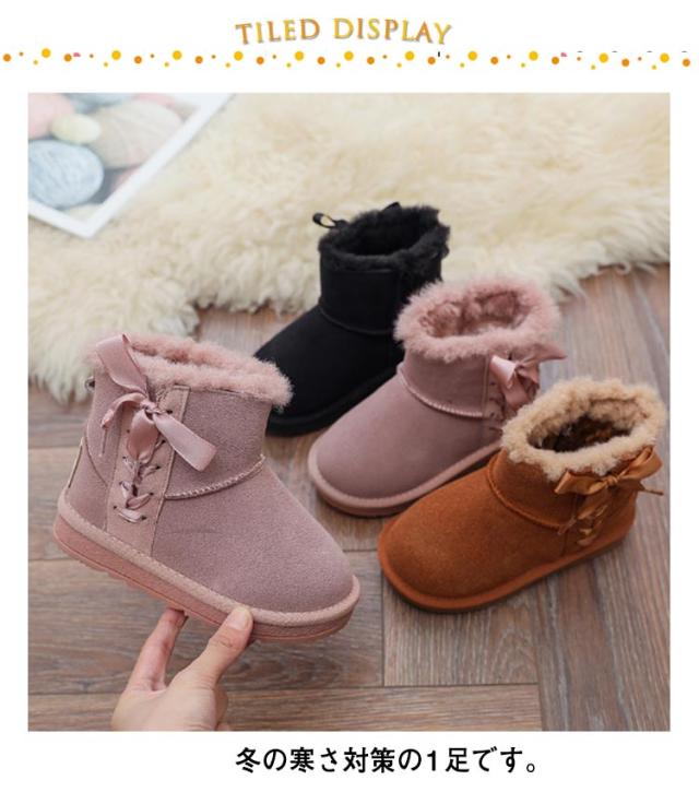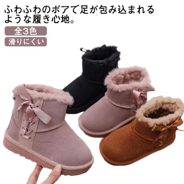 ムートンシューズ ショートブーツ 裏ボア 女の子 サイドジッパー 編み上げ サイドファスナー 滑りにくい フェイクファー 全3色
