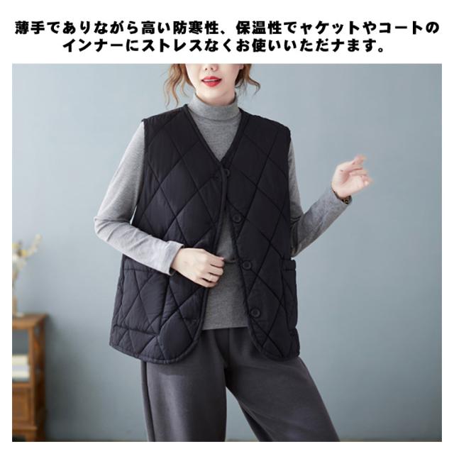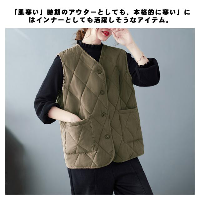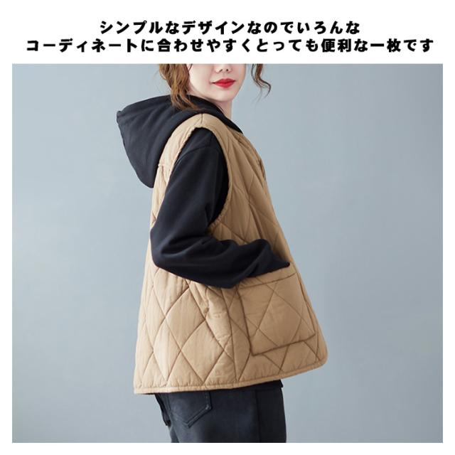 キルティング中綿ベスト レディース 中綿ベスト キルティングコート キルティングジャケット ノースリーブ 中綿 ショートベスト 無袖 大人 暖かい 柔らかい 軽量 防寒 シンプル 秋冬 通勤 普段着
