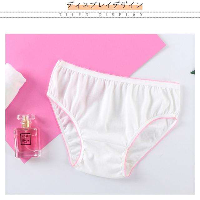 | 綿100%素材の使い捨てショーツです。 綿100%素材なので、通気性がよく肌触りも柔らか。 5枚入りで万が一の災害時にも安心。 海外旅行や入院時など、洗濯不要で重宝します。 1枚ずつ個包装されており、清潔に使えるし持ち運びもしやすいです。 | |