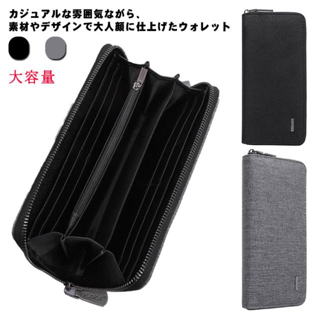送料無料 長財布 長サイフ メンズ ファスナー 財布 ロングウォレット 小銭入れ オックスフォード 大容量 仕分け ラウンドファスナー カード 小銭 ウォレット サイフ さいふ コンパクト ブラック グレー