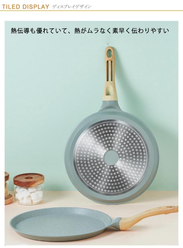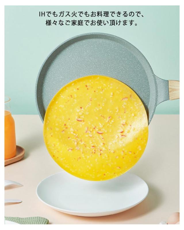 | 料理時間を楽しめる使いやすいフライパン 熱伝導も優れていて、熱がムラなく素早く伝わりやすい。 握りやすいグリップのハンドルは熱くなりにくく、 ストレスフリーな料理タイムに。 汚れがサッと落ちる!調理後も中性洗剤を付けたスポンジなどでサッとキレイに♪ IHでもガス火でもお料理できるので、様々なご家庭でお使い頂けます。 | |