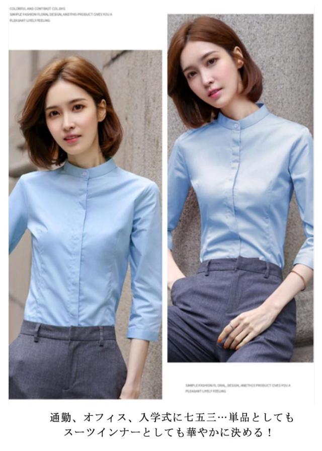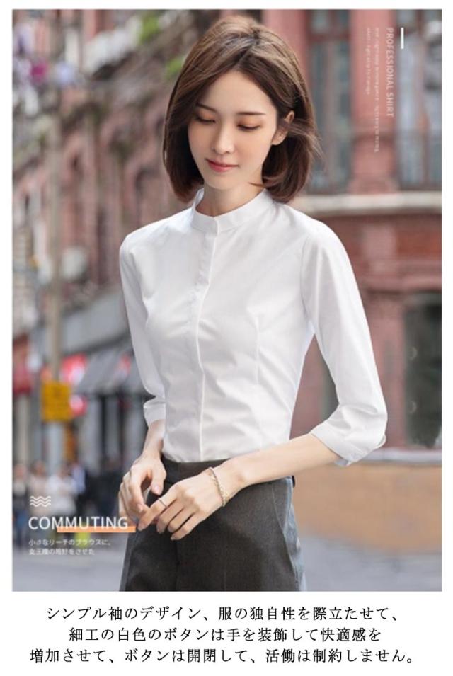 長袖/七分袖 ワイシャツ レディース スタンドカラーシャツ 立ち襟シャツ 七分袖シャツ 長袖シャツ フォーマルシャツ スーツシャツ 無地 シャツ ブラウス 通勤 オフィス ビジネス フォーマル 面接 就職 仕事着 着痩せ 大きサイズ 春 夏 秋 送料無料
