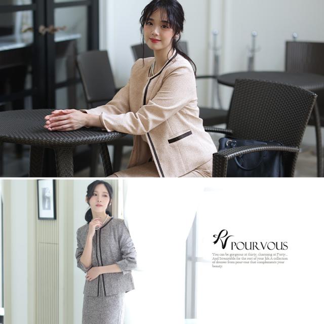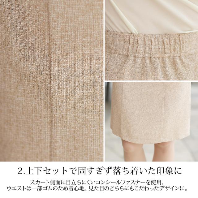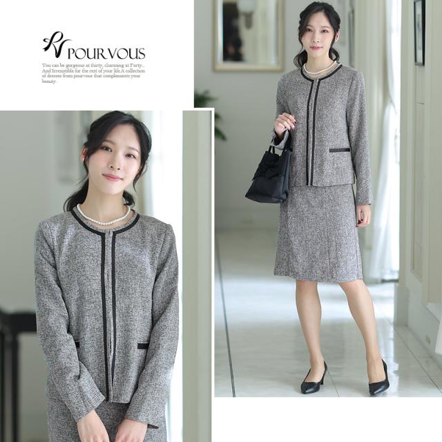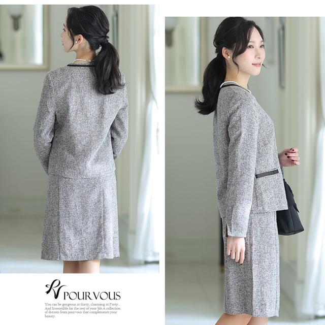 ツィードノーカラースカートスーツ【302221912】20代・30代・40代・50代長袖・膝丈・セットアップ・バイカラー・体型カバー・ジャケット・テーラード・スーツ・大きいサイズなど・即日発送・送料無料結婚式・婚活・披露宴・顔合わせ・二次会・同窓会・お呼ばれ・食事会・謝恩会・親族・七五三・お宮参り・冠婚葬祭・弔事・女子会・デート・入学式・卒業式・入園式・卒園式・ママ・マタニティー・セレモニー・セレブ・パーティー