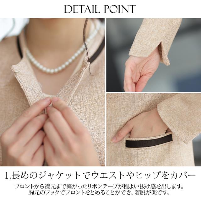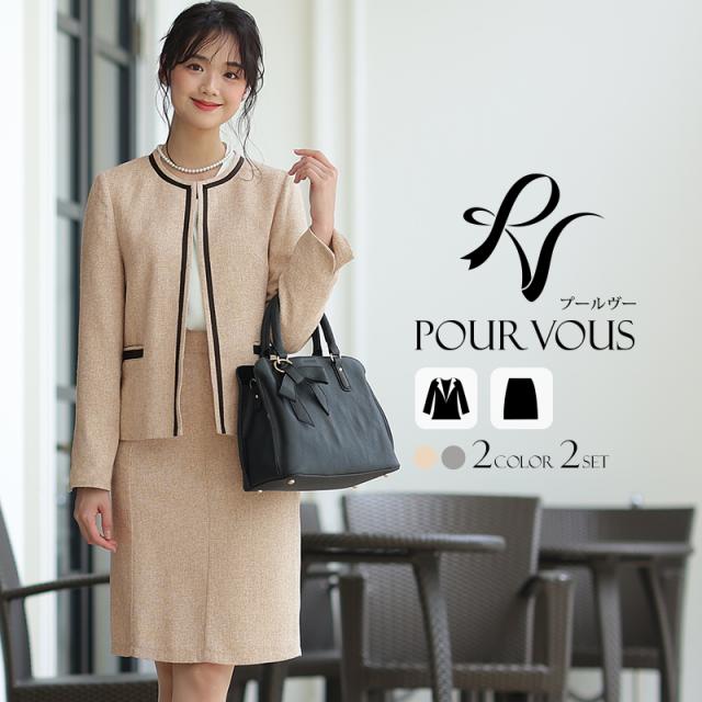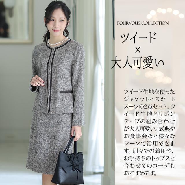302221912 スーツ 入学式 母 卒園式 大きいサイズ ママ セレモニー 入園式 フォーマル 卒業式 レディース ジャケット 送料無料 50代 冬 30代 2点セット フォーマルスーツ ノーカラー スカートスーツ リボンテープ きれいめ 秋 七五三 お宮参り セット 40代