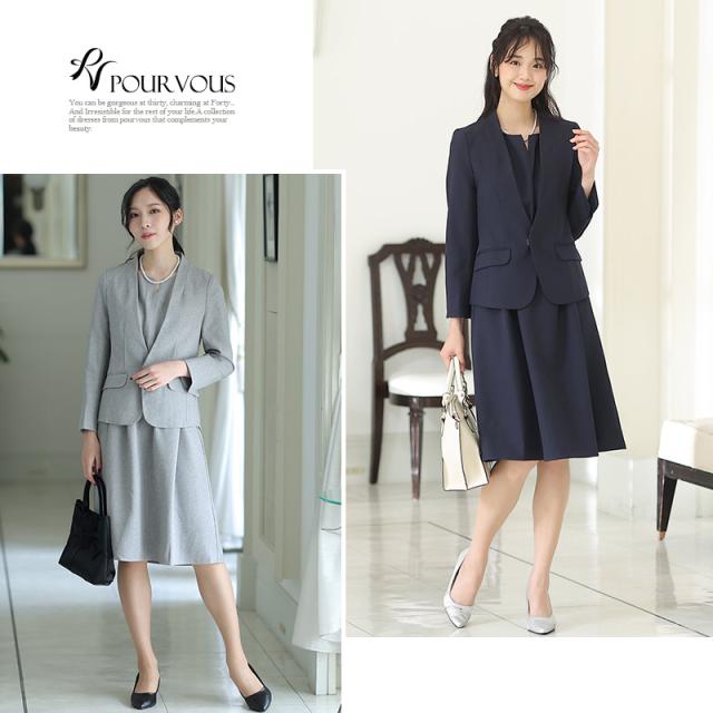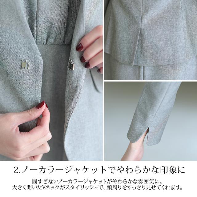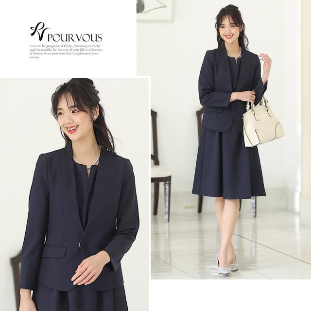 キーネックワンピースノーカラージャケットスーツ【304221912】20代・30代・40代・50代長袖・膝丈・セットアップ・スカート・体型カバー・ジャケット・テーラード・スーツ・大きいサイズなど・即日発送・送料無料結婚式・婚活・披露宴・顔合わせ・二次会・同窓会・お呼ばれ・食事会・謝恩会・親族・七五三・お宮参り・冠婚葬祭・弔事・女子会・デート・入学式・卒業式・入園式・卒園式・ママ・マタニティー・セレモニー・セレブ・パーティー