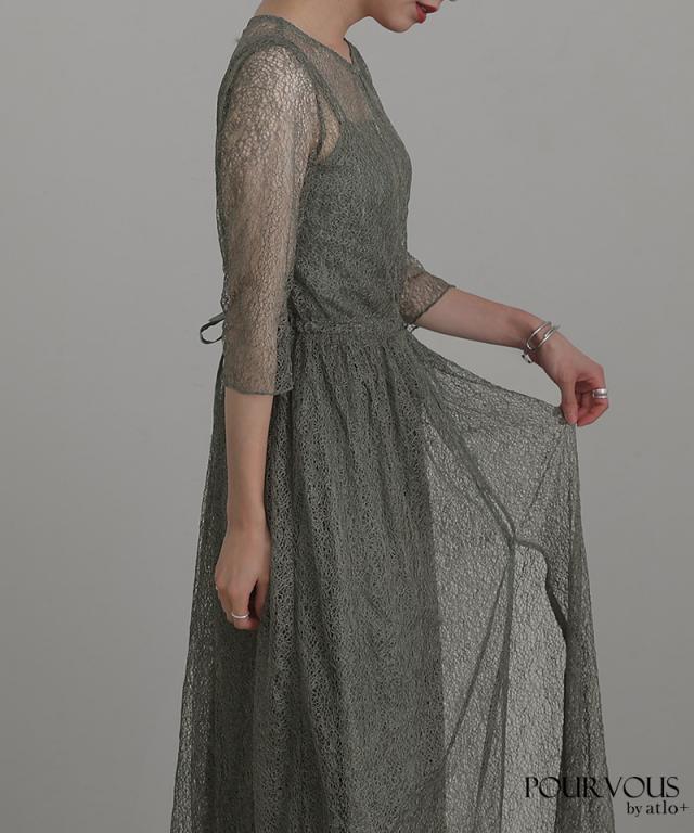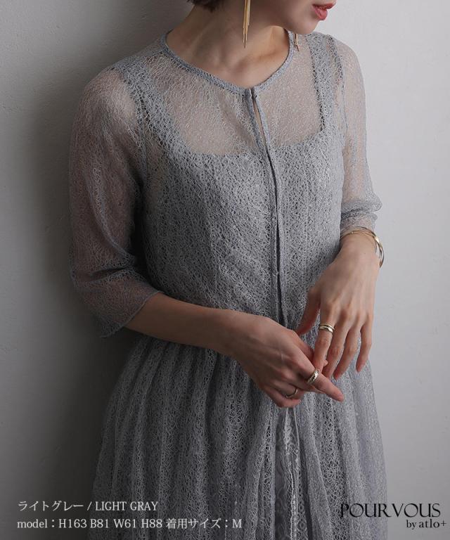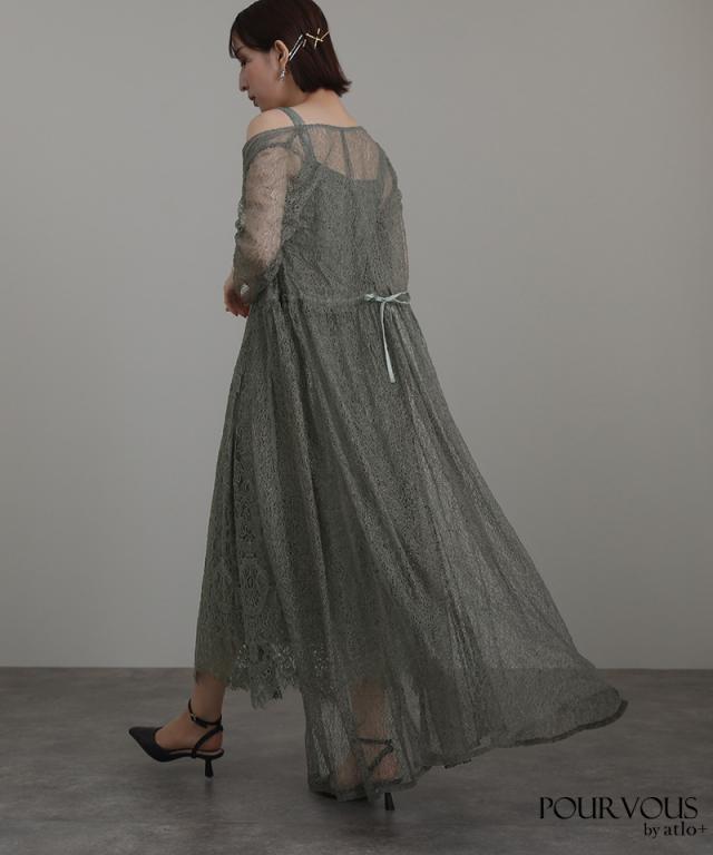 インナーのワンピースも総レースでアウターと別々に着用してもかわいいアイテム。