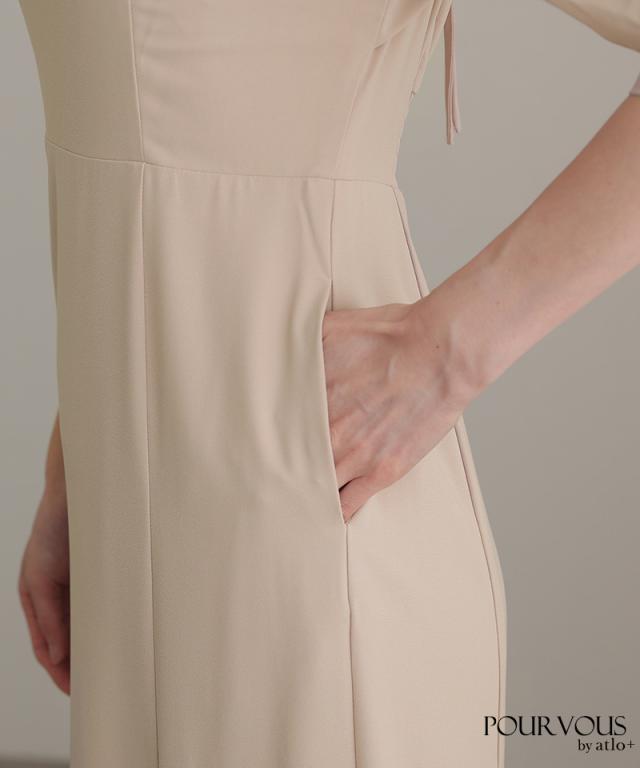 背中があいているバックスタイルで女性らしいシルエットを演出。