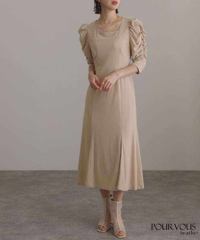 ■スクエアネック×ギャザースリーブ