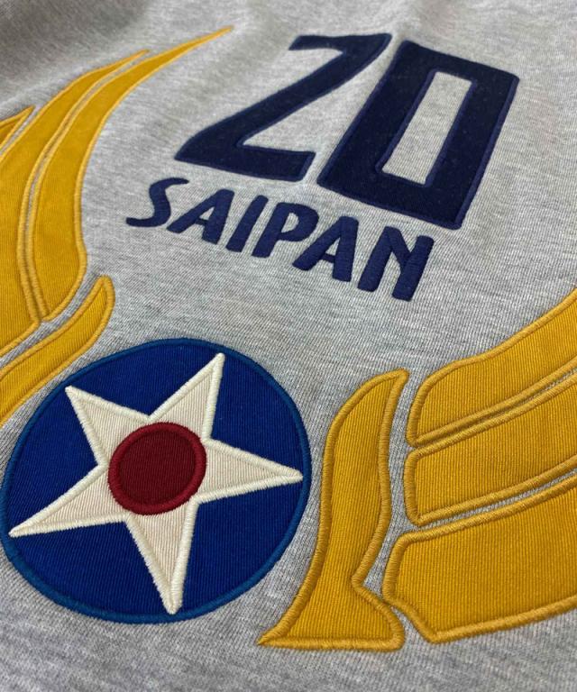AVIREXの名作MA-1"SAIPAN"のグラフィックを落とし込んだカラフルな刺繍アップリケが特徴だが、