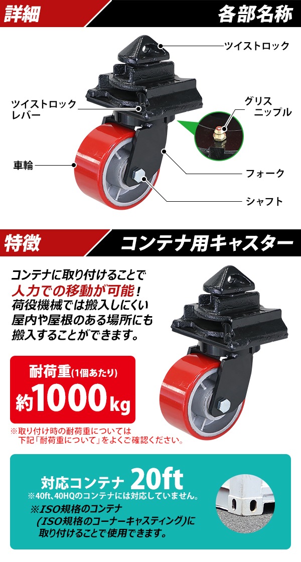 コンテナの人力移動が可能!コンテナ用キャスターです!
