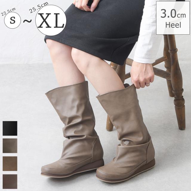 【在庫限り★2,999円!!】 ロングブーツ レディース ナウシカブーツ くしゅくしゅブーツ くしゅくしゅ ロング ミドル ローヒール 大きいサイズ ぺたんこ 疲れない 疲れにくい やわらか 柔らかい 歩きやすい ワイドシャフト 防寒 黒 ブラック