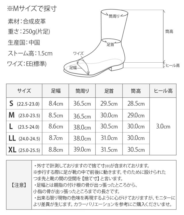 - サイズは24〜24.5少し甲高足です。 パンプス?サンダルL〜LL、スニーカー24〜24.5、 ブーツ(ムートン?他)25〜25.5を履いています。 ブラックXLを注文。厚手の靴下でピッタリ、薄手ナイロン製靴下で少し余裕、甲も気にすることなく履けました。かなりの甲高の方はキツく感じるかもしれません。ブーツは軽く靴底も良い高さで、歩きやすいです。ふくらはぎ部分は測った所、先端部分を折った状態内側32センチ、伸ばした状態内側39センチ、横伸び素材なし。