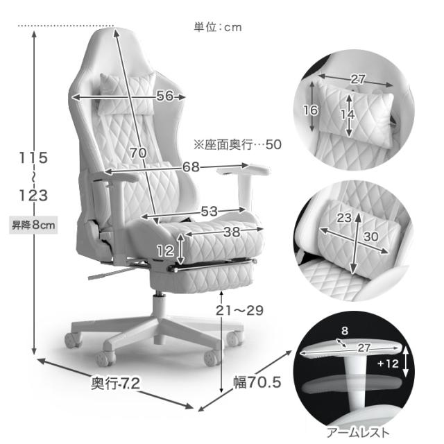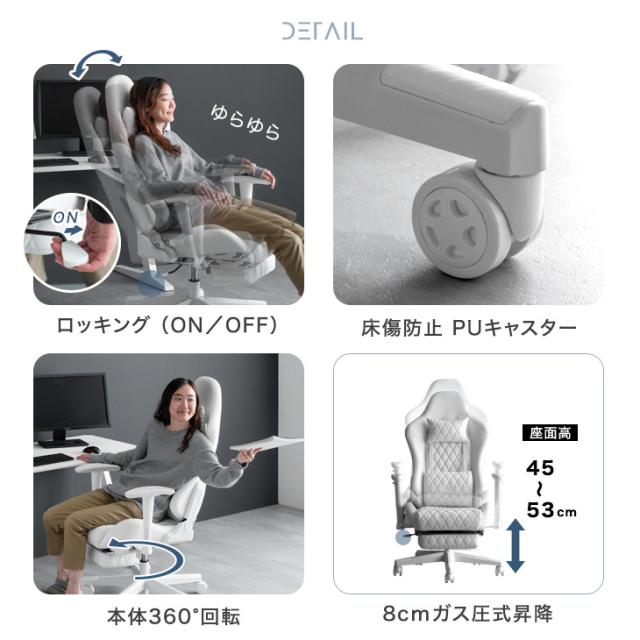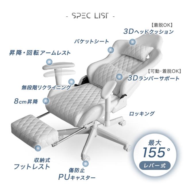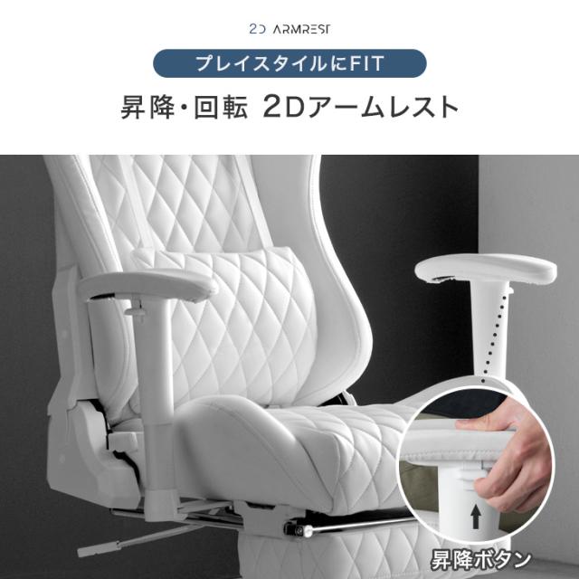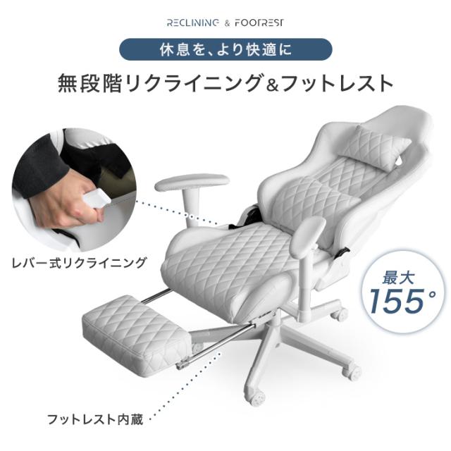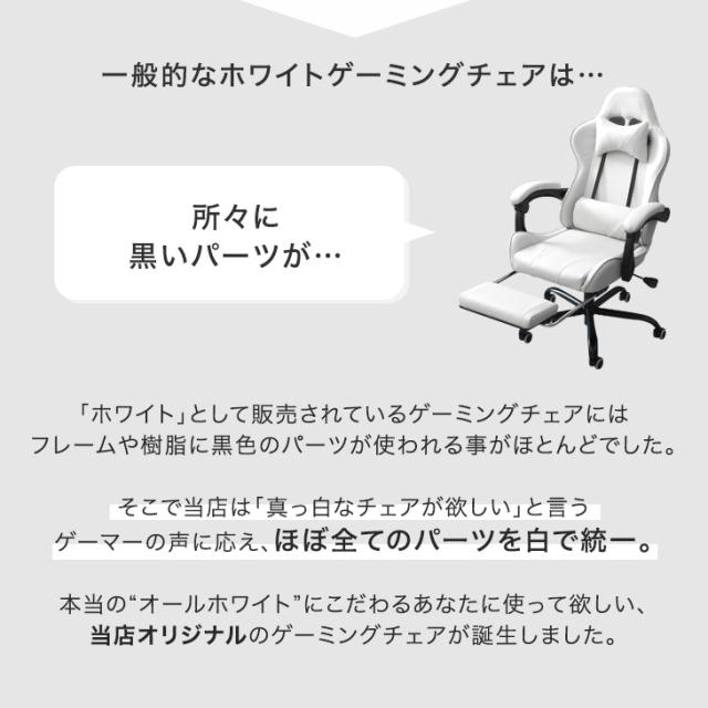 ゲーミングチェア オフィスチェア フットレスト付 リクライニング 肘掛 昇降 回転 ハイバック オールホワイト パソコンチェア リクライニングワークチェア ゲームチェア ゲーム椅子 デスクチェア おしゃれ ホワイト