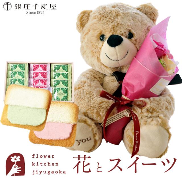枯れない花とスイーツのセット ソープフラワーアレンジ くまのマックス&フェアリーブーケ+銀座千疋屋 銀座フルーツラング 誕生日 記念日 お祝い花 即日発送 FKTPHSW