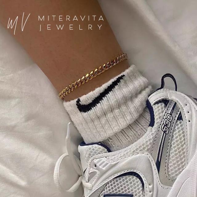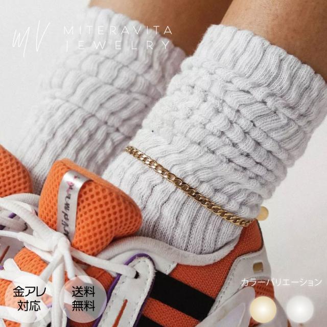 金属アレルギー対応 アンクレット サージカルステンレス キューバチェーン 【A23】レディース メンズ アンクレット 医療用ステンレス K14 ゴールド 金アレ シンプル アクセサリー miteravita ミテラヴィータ