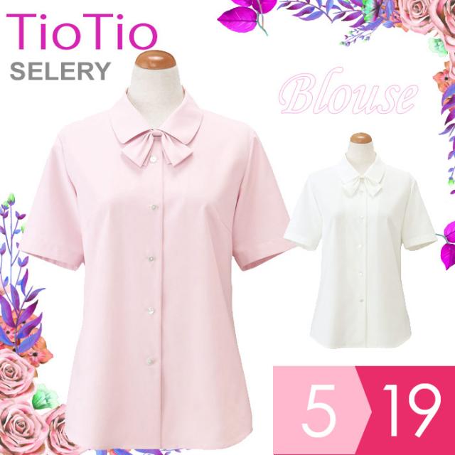 セロリー SELERY 事務服 TioTio 半袖ブラウス (リボン付) 3618シリーズ ピンク ホワイト 5〜19