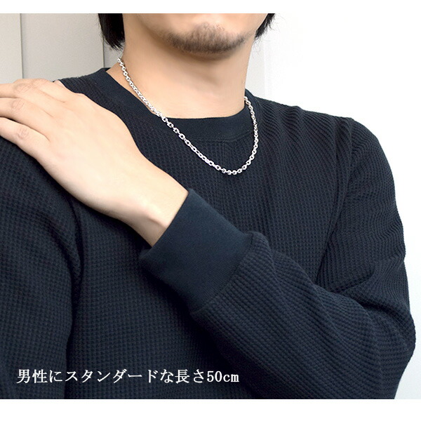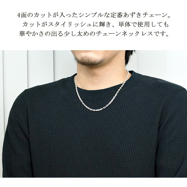 シルバー4面カットあずきチェーン 幅約4.1mm 50cm/シルバー925 ネックレス チェーンのみ メンズ