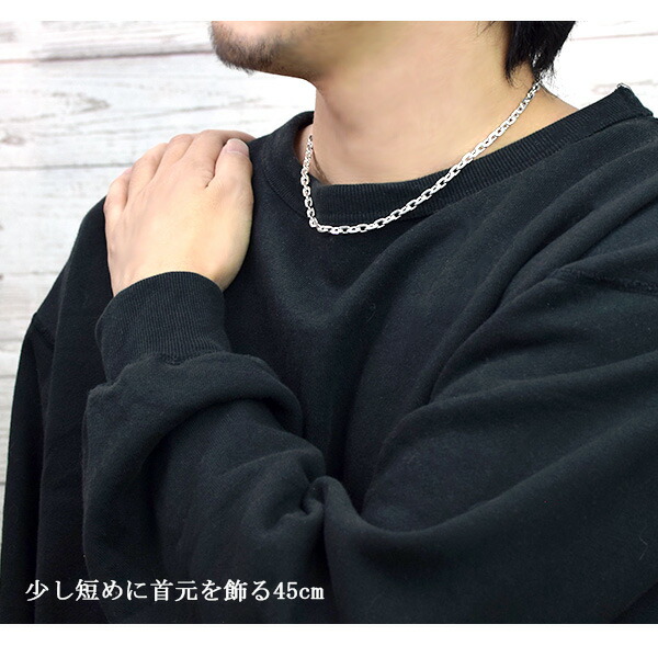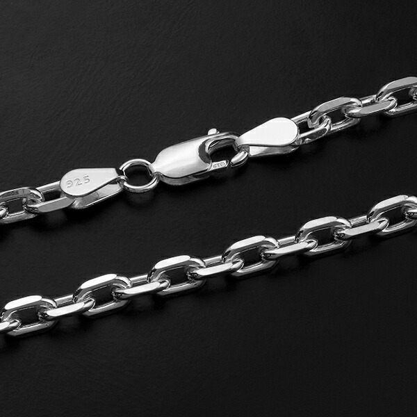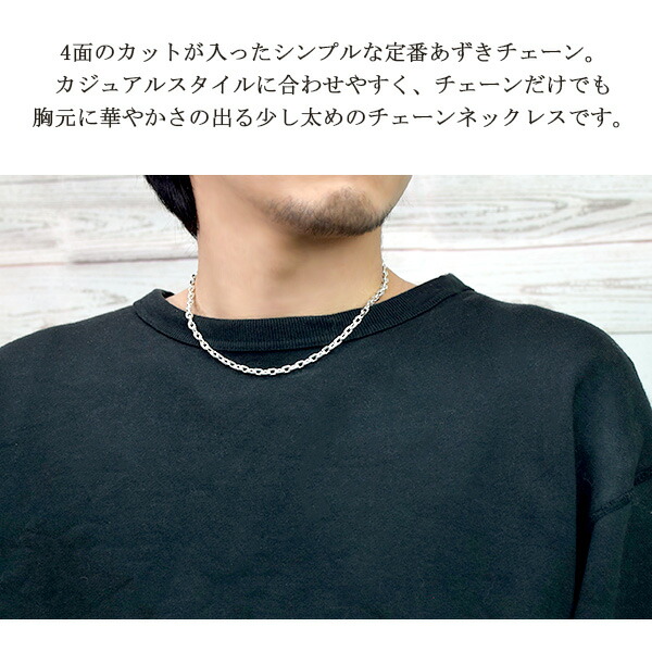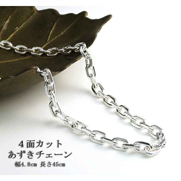 シルバー4面カットあずきチェーン 幅約4.8mm 45cm/シルバー925 ネックレス チェーンのみ メンズ