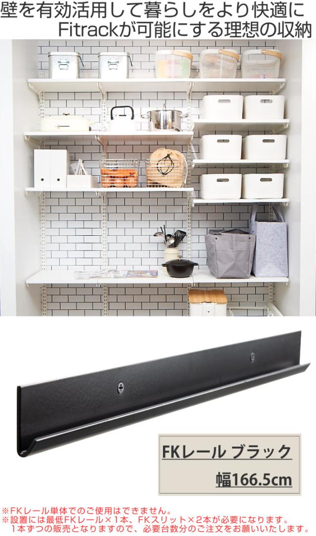壁面収納 FKレール 幅166.5cm フィットラック ブラック ( 幅1665mm 壁面 棚柱 支柱 レール DIY ダボレール 収納 棚受け金具 棚受けレール 黒 棚 可動 支柱レール ラック クローゼット 有効活用 収納スペース )