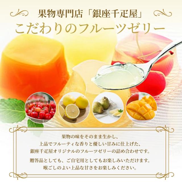 果物の味をそのまま生かし、上品でフルーティーな香りと優しい甘みに仕上げた銀座千疋屋オリジナルのフルーツゼリーの詰め合わせです。