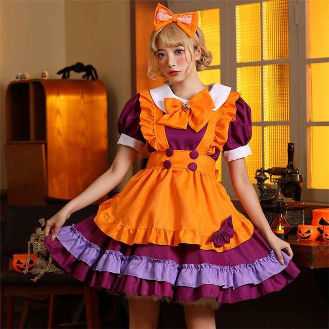 かぼちゃ メイド服 ハロウイン コスプレ 衣装 コスチューム ハロウィン メイド コスプレ かぼちゃ 衣装 レディース ハロウィーン コスチューム 大人 メイド服 仮装 ゴスロリ ws-20220814-09