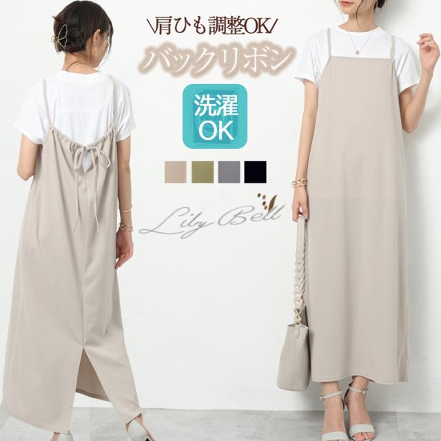 キャミワンピース ロング タイト キャミワンピ レディース 春 夏 秋 バックリボン 低身長 大人 キャミ ワンピース ドレス キャミソール aライン 肩ひも 黒 イエロー ミント モカ グリーン 大人可愛い キャミソールワンピース ロングワンピース aラインワンピース カジュアル