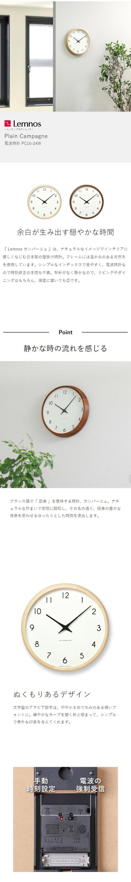 [ Lemnos Campagne PC10-24W ]レムノス 掛け時計 電波時計 カンパーニュ 壁掛け時計 電波 時計 掛時計 かけ時計 おしゃれ シンプル ウォールクロック 壁掛け 木製 ナチュラル リビング 北欧 インテリア タカタレムノス