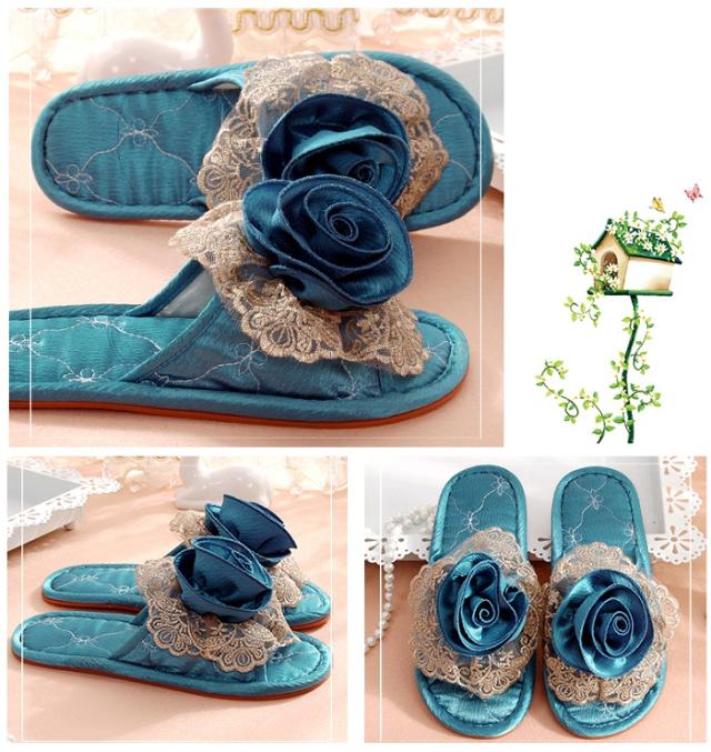 ルームシューズ ルスリッパ スリッパ レディース 室内履き 上履き 婦人 四季 刺繍 レース リボン かわいい 可愛い 高級 女性 来客用 22〜23/23〜24cm ブルー滑り止め 柔らかい