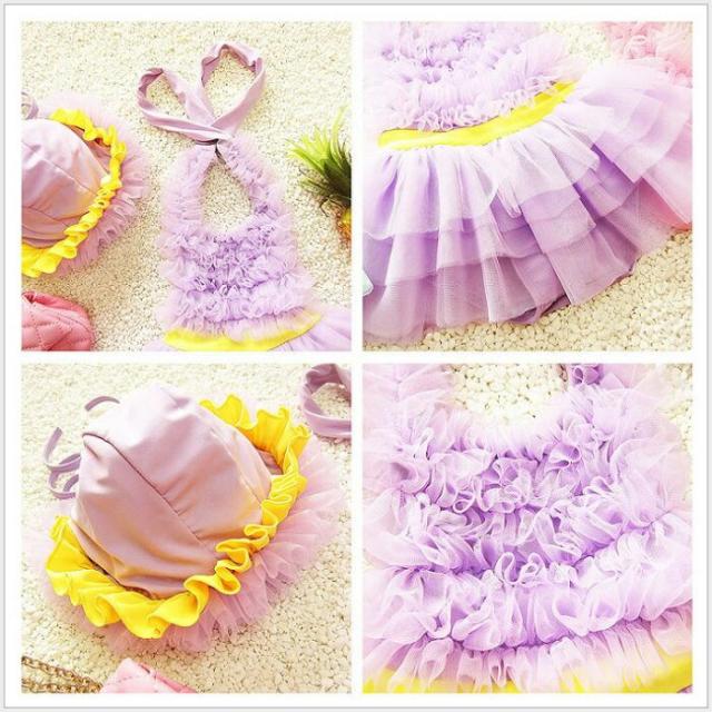 子供 水着 ベビー キッズ ジュニア 女の子 ガールズ 赤ちゃん ジュニア こども キャップ付き 海水浴 プール 90 100 110 120 130cm 2点セット 紫