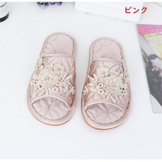 ルームシューズ ルスリッパ 送料無料 スリッパ レディース 室内履き 上履き 婦人 四季 刺繍 レース リボン かわいい 可愛い 高級 女性 来客用 22〜23/23〜24cm ピンク グレー オフホワイト 滑り止め 柔らかい
