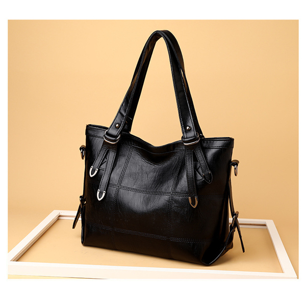 シンプルな中にも上品な女性らしい雰囲気のあるレザートートバッグ。