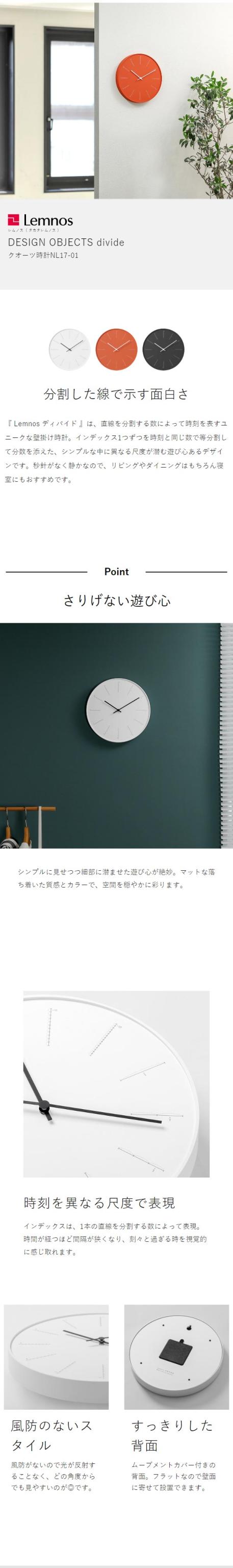 [ Lemnos divide NL17-01 ]レムノス 掛け時計 壁掛け時計 ディバイド 時計 おしゃれ シンプル ウォールクロック 壁掛け かけ時計 モダン ホワイト ブラック デザイン 北欧 インテリア リビング 日本製 タカタレムノス nendo【送料無料】
