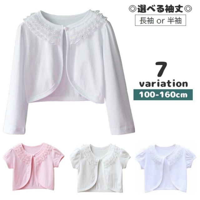 カーディガン ボレロ キッズ ジュニア 子供服 女の子 長袖 半袖 トップス アウター 上着 羽織り ラウンドネック フェイクパ