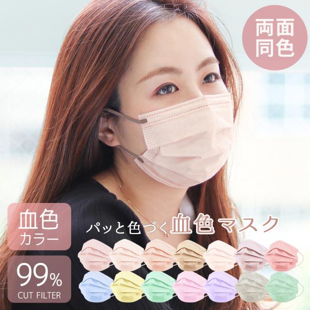 【期間限定価格!1箱350円】マスク 不織布 冷感マスク 血色カラー 20枚×4箱 冷感マスク 使い捨てマスク バイカラー マスク カラーマスク 不織布マスク カラー 元祖 血色マスク 両面紐同色仕様 『やわらかマスク』 個包装 大人用 平ゴム