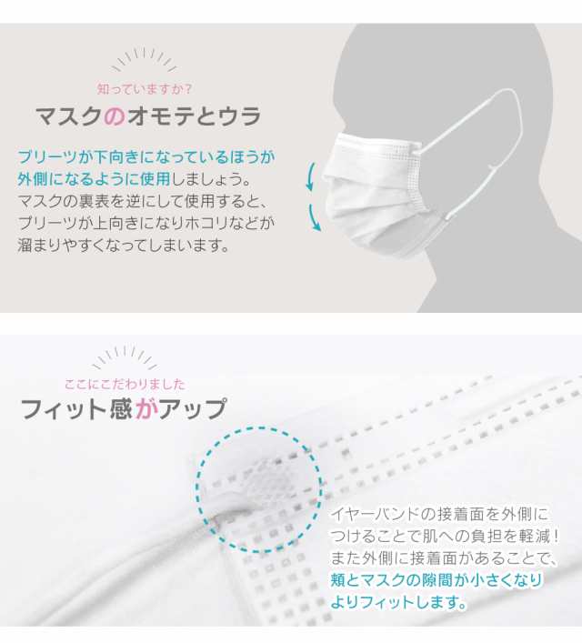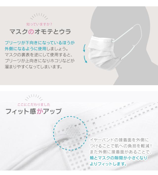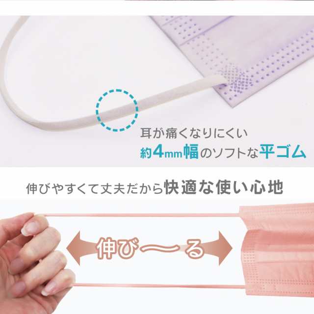 | 特徴 | 選べるカラー 99%カット高密度フィルター 特注仕様両面同色 平ゴム採用 10枚ずつ袋入り 3層構造 風邪予防 飛沫対策 花粉対策 PM2.5対策 ウイルス飛沫対策 ハウスダスト対策 |