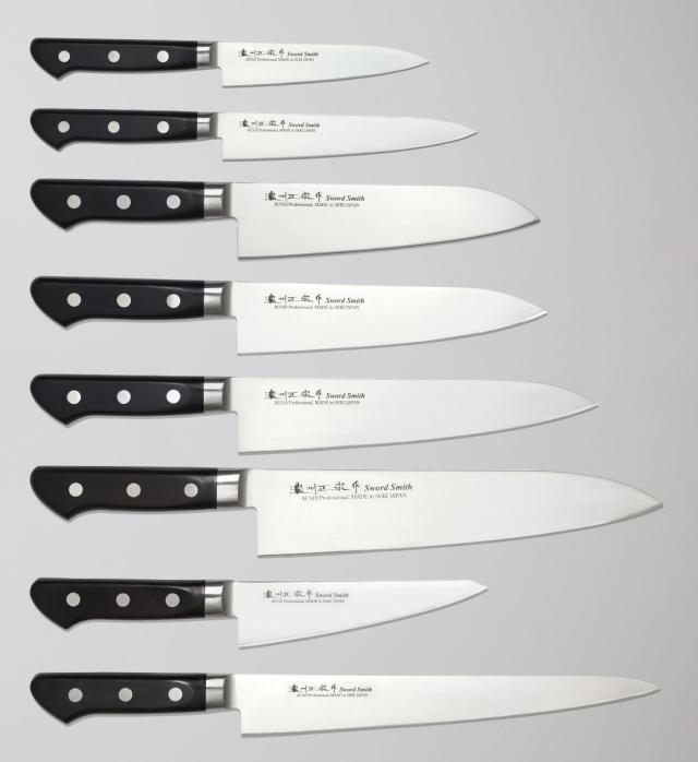 日本でも有数の刃物の町、岐阜県関市で造られた本職向け包丁シリーズです。三徳包丁、牛刀包丁、骨透包丁、筋引包丁と種類も豊富なので、用途によって使い分けができます。