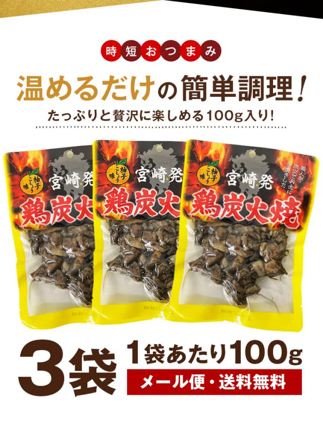 鶏の炭火焼 ゆず胡椒味 100g×3袋 おつまみ お試し 送料無料 宮崎名物 柚子こしょう 国産 常温保存OK 非常食にも おかず おやつ 炭火焼 手土産 ギフト プレゼント 惣菜 おすすめ 日持ち 旨さには 訳あり 常温 1000円 ぽっきり ポイント消化 親鶏 [メール便]
