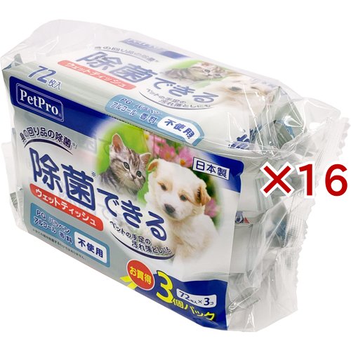 ペットプロ 除菌できるウェットティッシュ(3個パック入×16セット(1個72枚入))[ペットの雑貨・ケアグッズ]