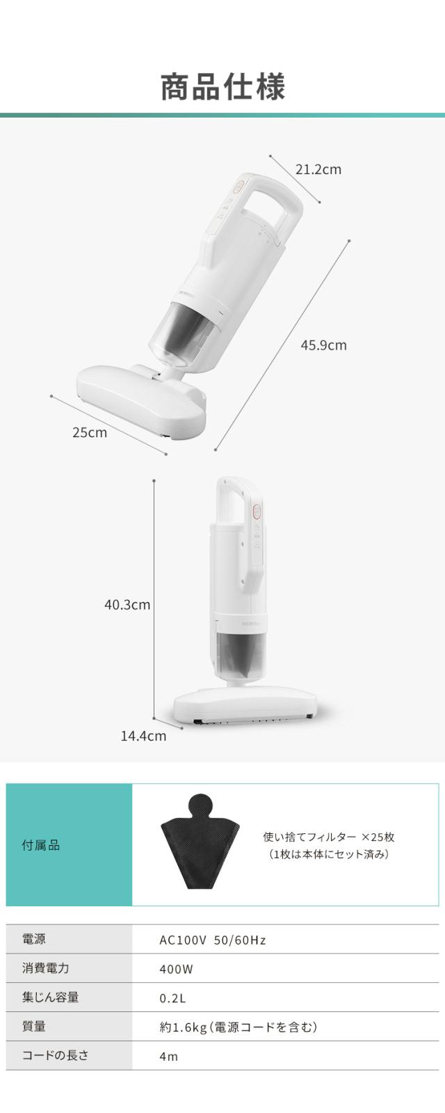 掃除機本体、使い捨てフィルター×25枚(1枚は本体にセット済み)、集塵フィルター(予備)