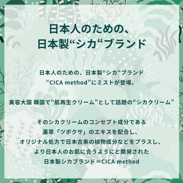 ツボクサエキス(マデカッソシド)と日本古来の植物成分を配合したシカメソッドミスト。