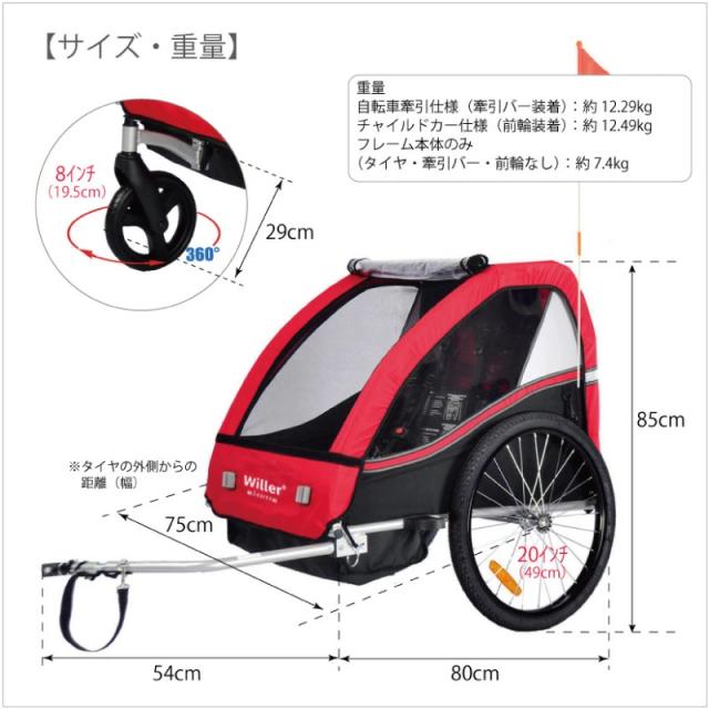自転車トレーラー 自転車用 ベビーカー 子供用 Willer ウィラー 自転車 カート 2WAY 手押し ベビーカー サイクルトレーラー 【送料無料】【北海道・沖縄県・一部離島へ発送不可】キッズ チャイルド 日本仕様 正規輸入品 世界最高水準 安心の日本メーカー