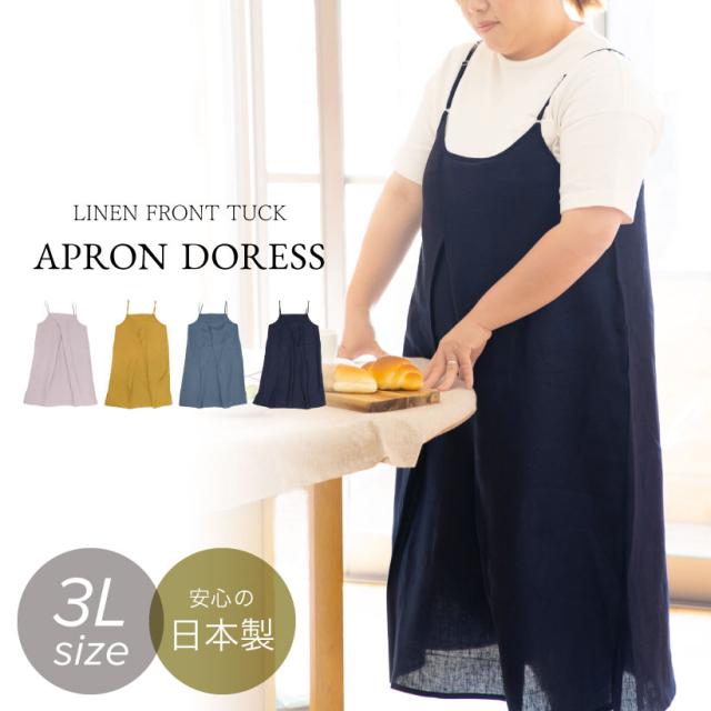 【メール便1枚のみ送料無料】大きめサイズのフロントタックエプロンドレス【3Lサイズ】大きいサイズ 日本製 シンプル 無地 おしゃれ プレゼント ギフト 母の日【N】【M】
