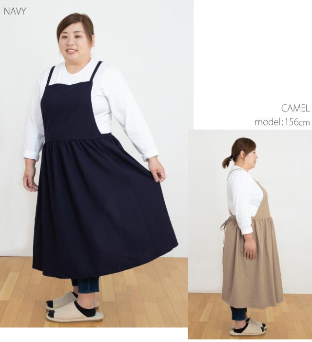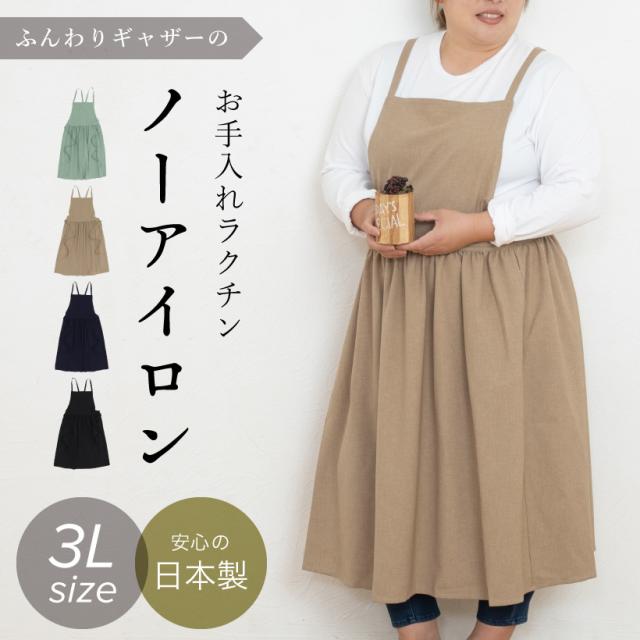 【メール便1枚のみ送料無料】ノーアイロン♪ 大きめサイズのふんわりギャザーエプロン【3Lサイズ】大きいサイズ 日本製 ノンアイロン 無地 おしゃれ プレゼント ギフト 母の日【N】【M】