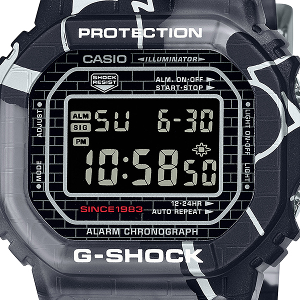 1983年の発売以来、飽くなき強さを求めて進化を続けるタフネスウオッチG-SHOCKから、ストリートカルチャーに敬意を表し、時計全体にグラフィティをプリントしたStreet Spiritシリーズです。
