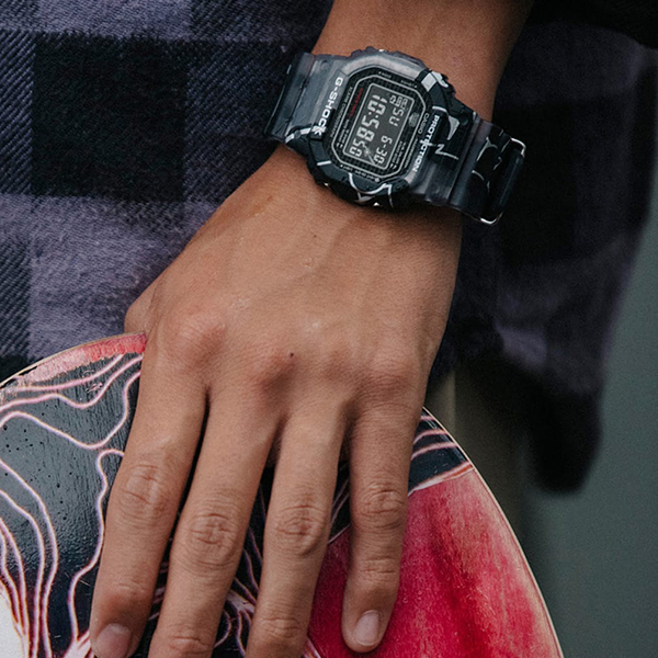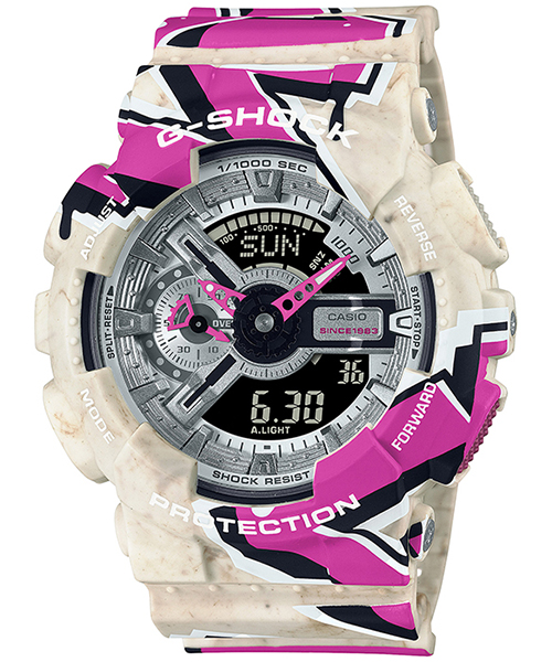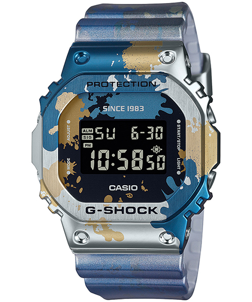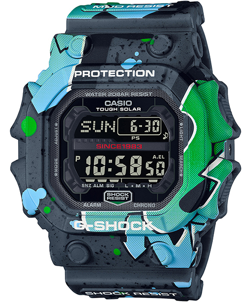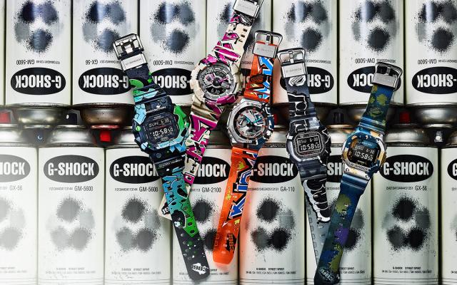 オリジナルのグラフィティアートをベゼル、バンドに大胆にプリントし、ファッションシーンで幅広く活用できるデザインに仕上げました。ベースモデルには、スクエアケースの DW-5000、メタルカバードのGM-5600/GM-2100、そしてビッグケースの GX-56/GA-110を採用しています。