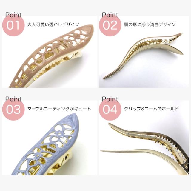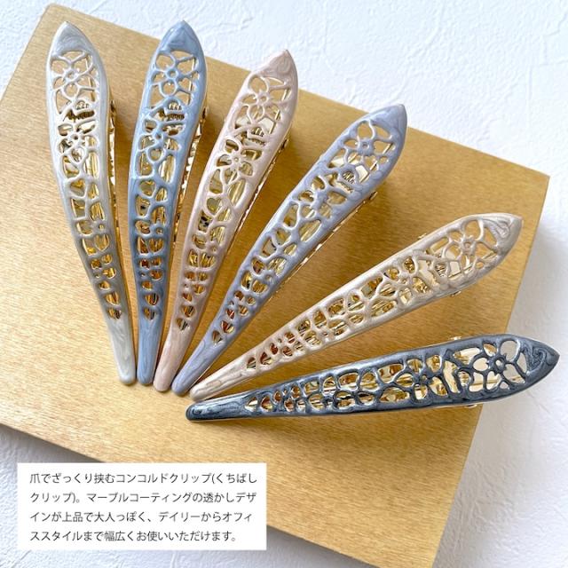 ヘアクリップ くちばし 透かし柄 コンコルド くちばしクリップ マーブル コンコルドクリップ コーム付き ヘアクリップ グレー 白 ホワイト ベージュ ピンク 紫 大きめ レディース おしゃれ ヘアアクセサリー ビーククリップ 韓国 プレゼント
