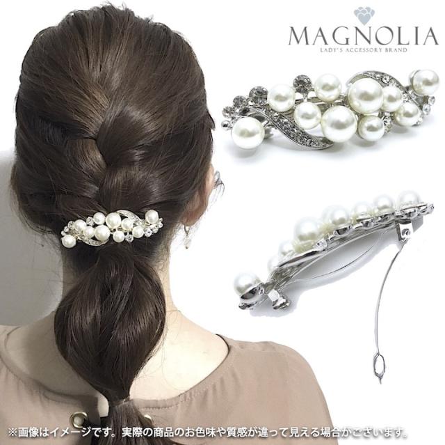 バレッタ 結婚式 パール ヘアクリップ ヘアアクセサリー まとめ髪 結婚式 二次会 入学式 卒業式 キラキラ フォーマル パーティー MM-BA20018