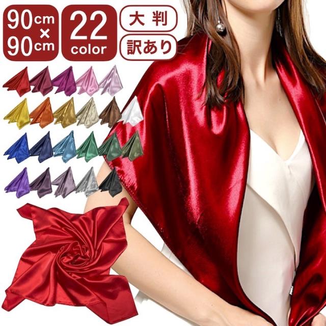 訳あり スカーフ 大判 全22カラー 90cm 正方形 大判スカーフ ポリエステル 無地 レディース メンズ 赤 レッド 緑 黒 ブラック 白 黄色 イエロー ピンク オレンジ 紫 パープル グリーン リボン ストール バンダナ バッグ ヘアアクセサリー ヘアアレンジ ダンス 衣装